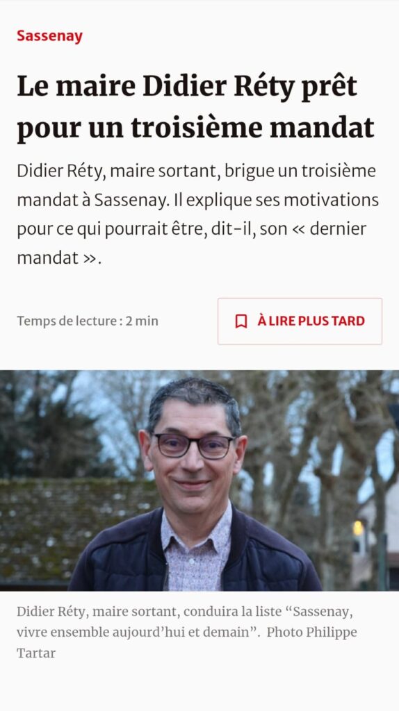 10/02/2026 – Municipales 2026 Sassenay : Didier Réty conduira la liste « Sassenay, vivre ensemble aujourd’hui et demain ».